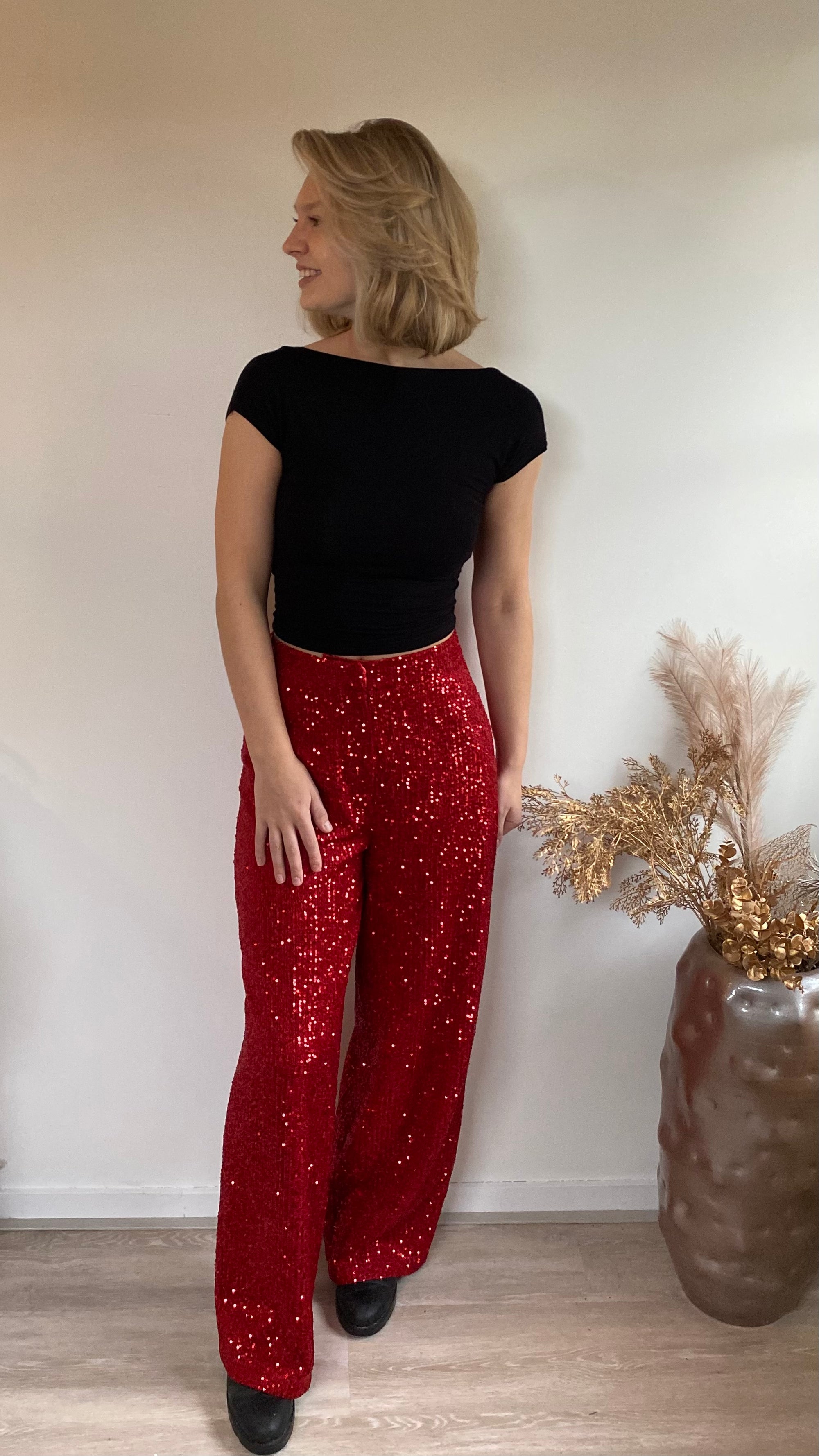 Glitter pantalon rood