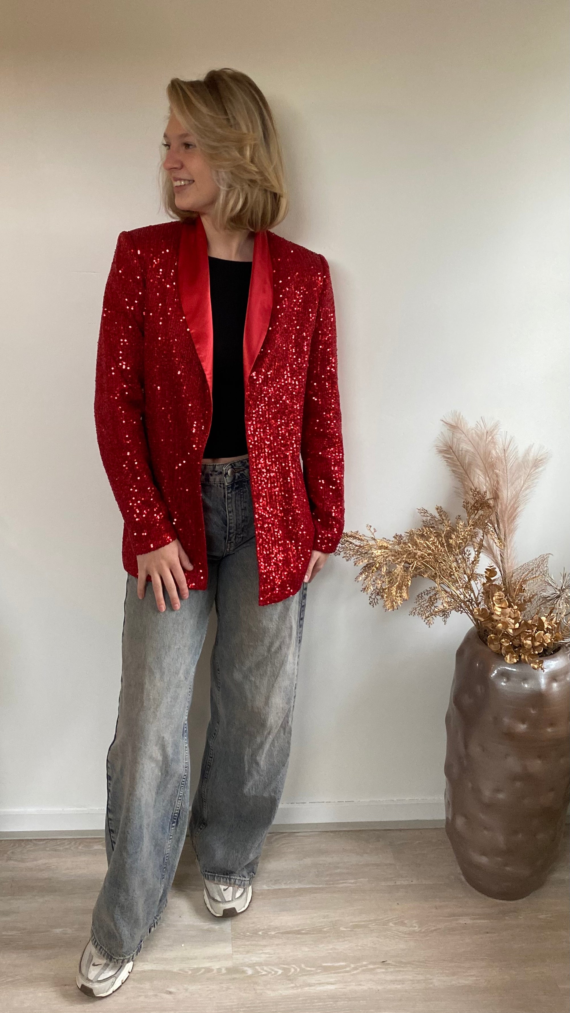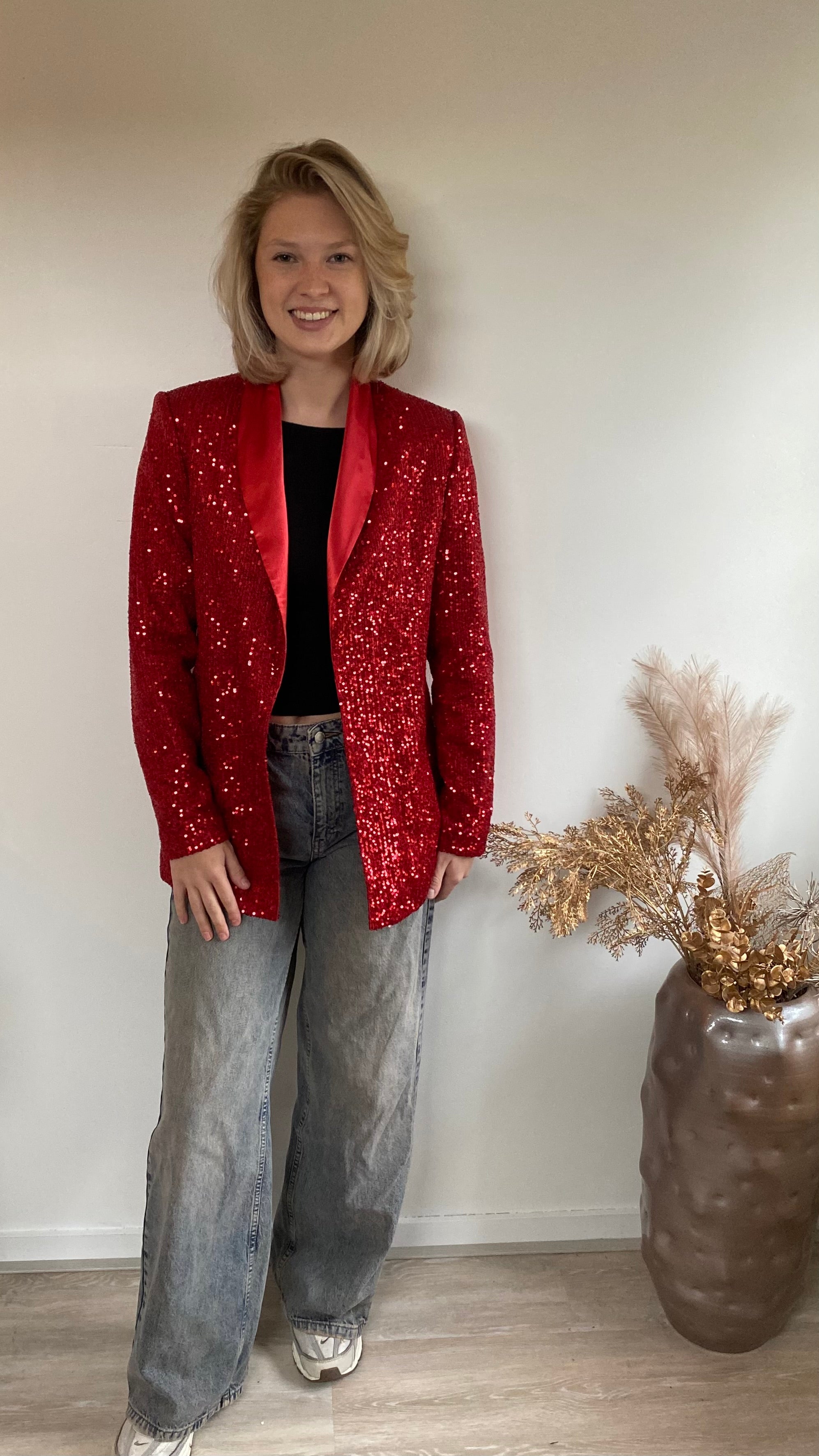 Glitter blazer rood